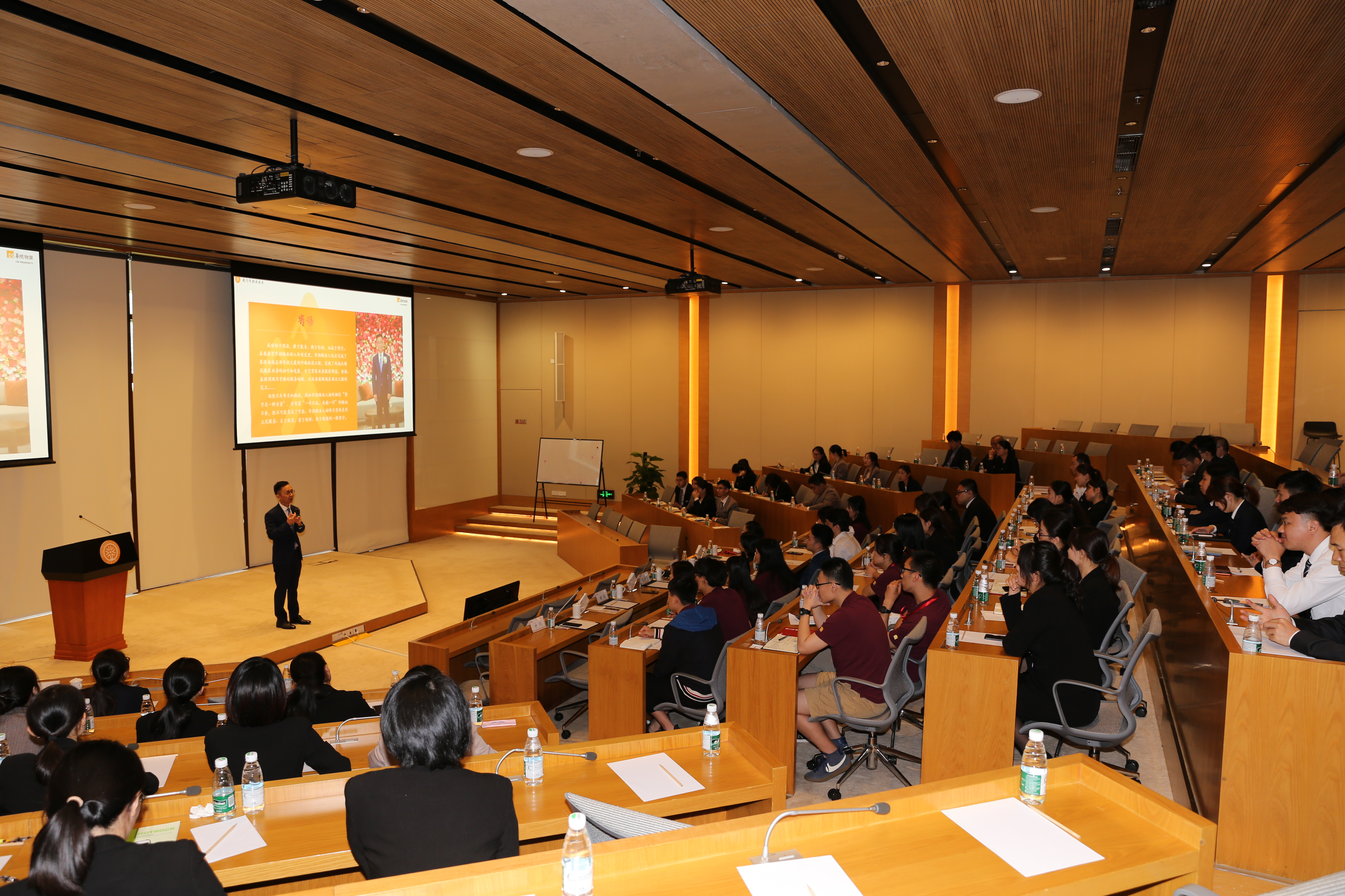 会议首先播放了由华润物业制作的华润之歌精彩视频。随后,包燕飞总经理向在座的管理培训生们分别介绍了华润集团及华润物业的整体概况、核心业务、发展历程及企业文化,并结合自身在华润三十四年的亲身经历和奋斗历程,分享了自己与华润共同成长的心得体会,生动诠释了华润集团及华润物业的人才培养战略,使大家切实感受到华润人的远大理想和无私奉献,从而激励新入职员工为将华润建设成为具有全球竞争力的世界一流企业而不懈努力。