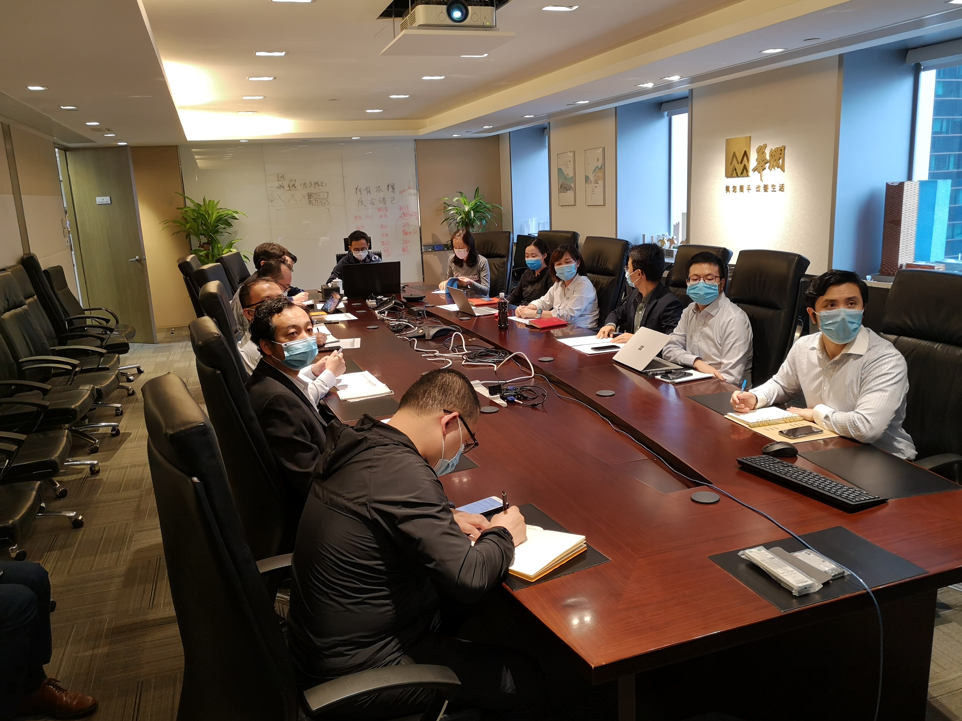 2020年4月15日,华润物业有限公司召开业务线上化推进会,包燕飞董事总经理主持会议,公司管理团队成员,总部部室负责人,下属事业部管理团队,各酒店总经理共25人分别在现场和8个视频点参会。
